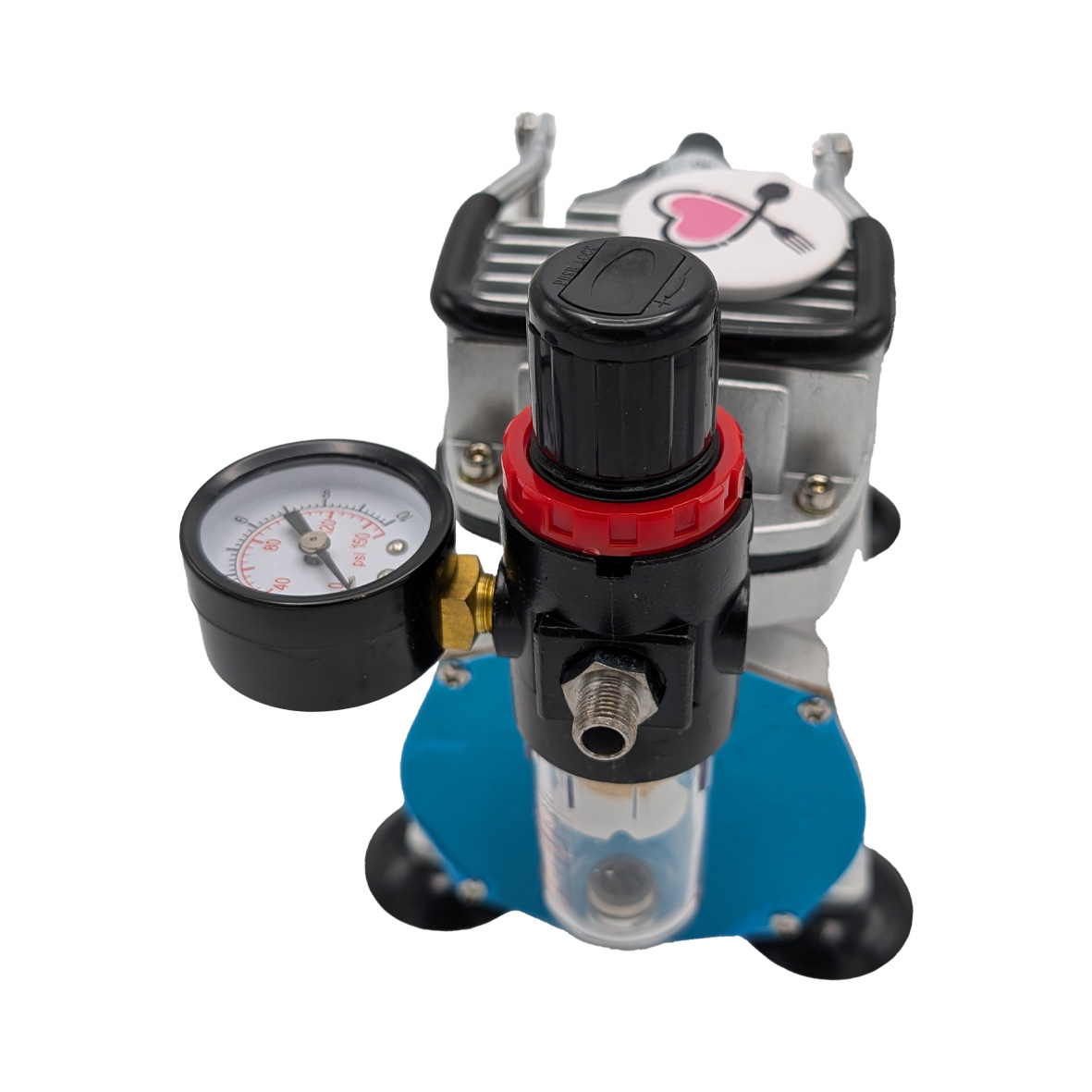 پمپ مخملپاش ایربراش تکس ایر ساخت کشور چین قدرت موتور 1/5 اسب بخاری با صدای بسیار کم سایلنت تولید 23 لیتر باد در دقیقه با فشار 3 الی 4 لیتر بر دقیقه مجهز به گیج تنظیم فشار هوا و فیلتر رطوبت گیر باد دارای بدنه آلومینیومی بسیار با کیفیت، مقاوم و سبک دارای دستگیره جهت حمل و نقل آسان با وزن 3.5 کیلوگرم کاهش لرزش و نویز به کمک پایه های لاستیکی مجهز به سنسور روشن و خاموش خودکار (اتوماتیک)