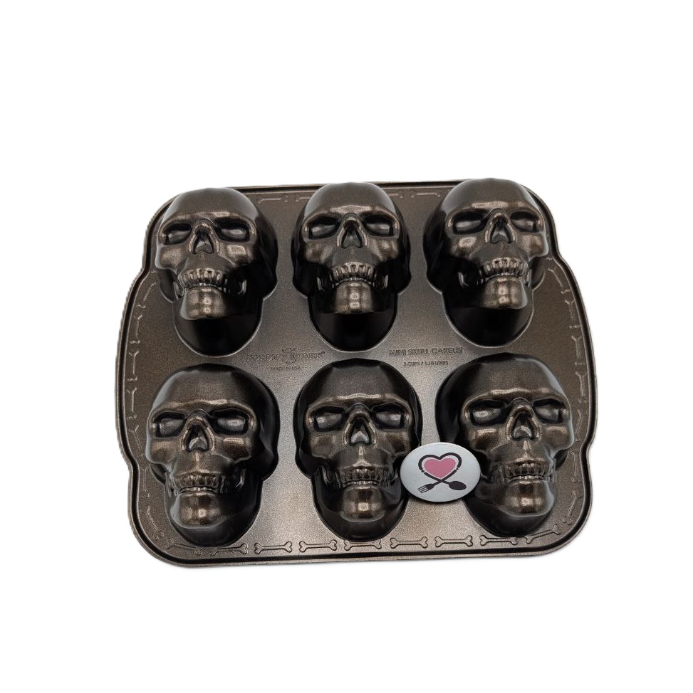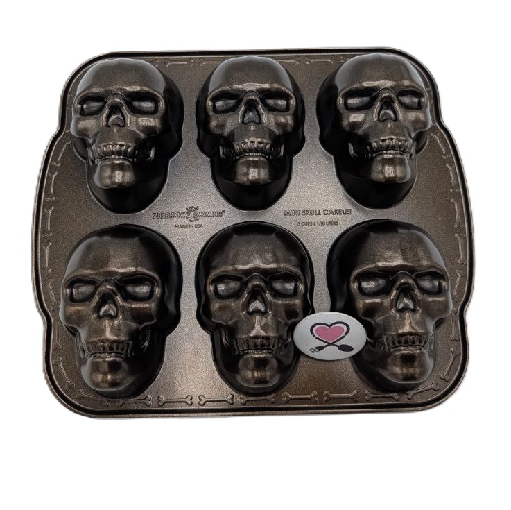 Halloween Bakeware, Haunted Skull Cakelet Pan, Bronze