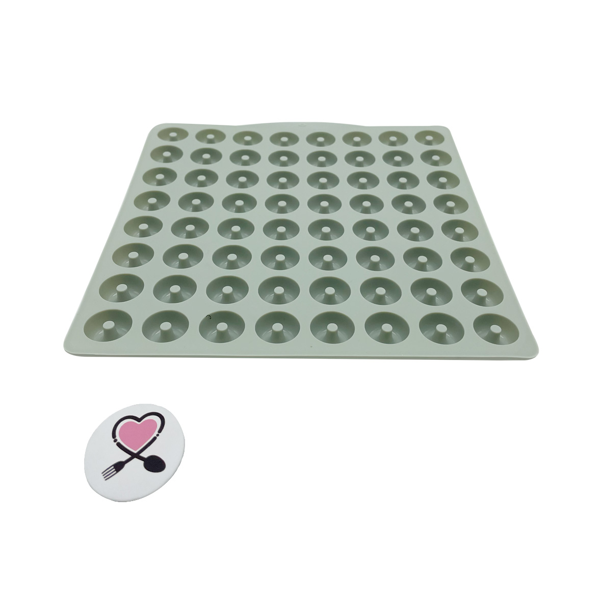 – توضیحات جامع قالب سیلیکونی مینی دونات (۶۴ تایی، ابعاد ۲۰×۲۰ سانتیمتر، قطر هر دونات: ۲ سانتیمتر)