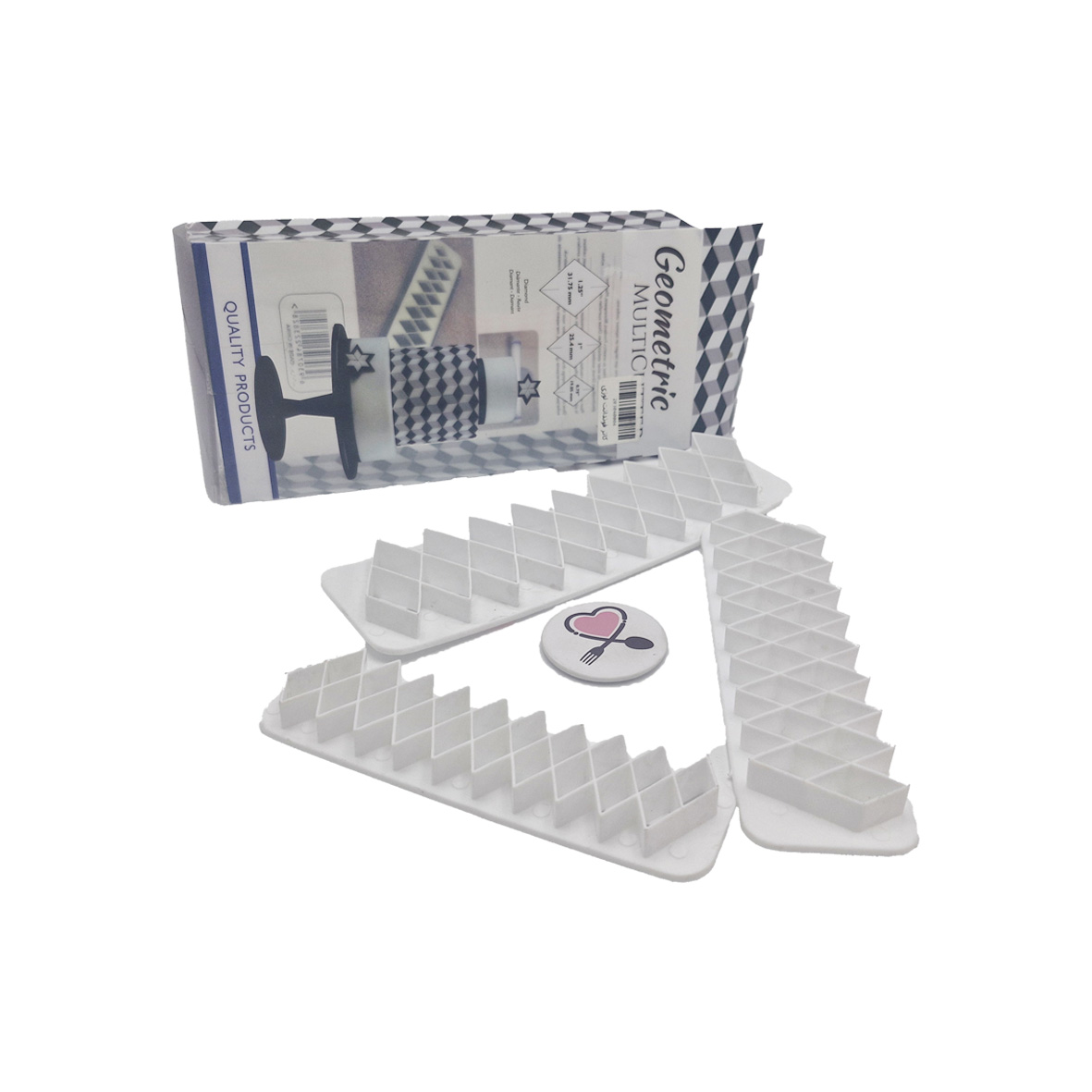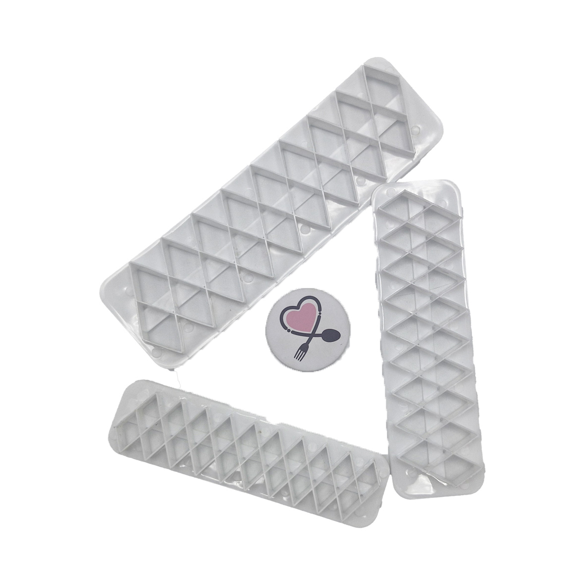 قالب لوزی سه‌تایی با سایزهای کوچک، مناسب برش سریع و یکدست خمیرهای تزئینی برای طراحی کیک و شیرینی.