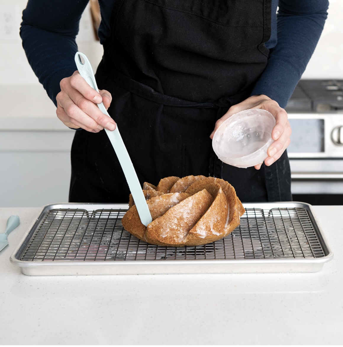 برای جلوگیری از چسبیدن کیک به قالب و حفظ شکل ظاهری آن، استفاده از تیغه نرم و انعطافپذیر گزینهای ایدهآل است. این ابزار بهراحتی در امتداد دیوارههای قالب حرکت کرده و کیک را بدون ترکخوردگی یا آسیب جدا میکند. در عین حال، ابزار منحنی استخراج به کاربر این امکان را میدهد که قسمتهای برجسته یا فرورفته قالبهای پیچیده را نیز بهراحتی تمیز کرده و کیک را سالم بیرون بیاورد.