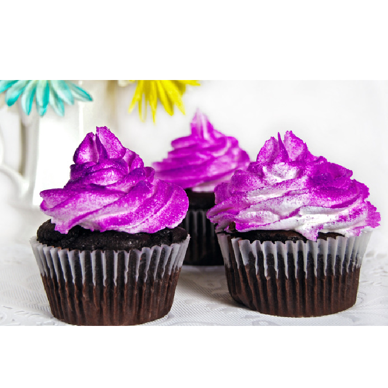 با استفاده از رنگ پودری خوراکی دکول بنفش میتوانید گلهای ظریف بنفش، آسمان کهکشانی یا حتی سایههای رویایی روی فوندانت و شکلات خلق کنید. ترکیب این رنگ با رنگهای طلایی یا نقرهای نیز جلوهای لوکس و چشمگیر به کار شما میبخشد.