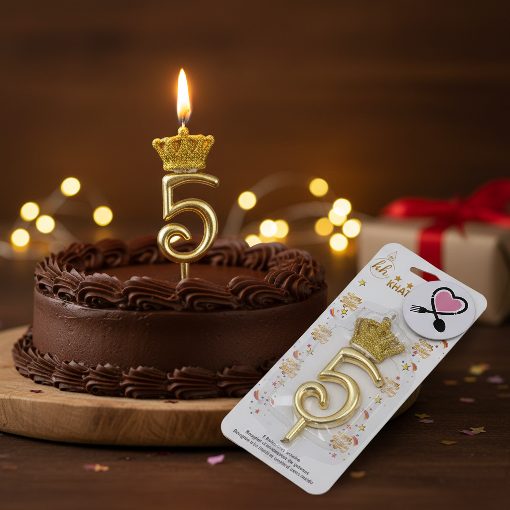 خرید شمع طلایی تاجدار عدد ۵ | شمع عددی لاکچری تولد