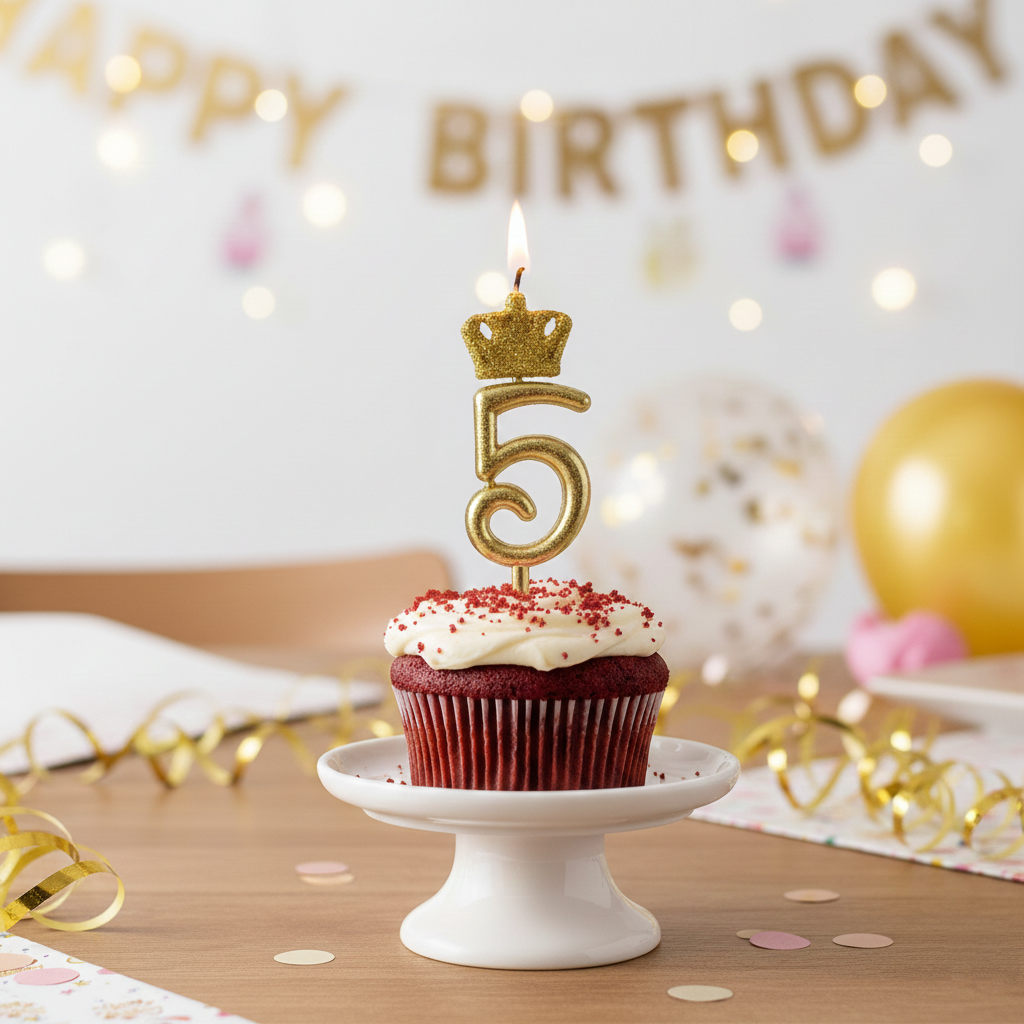 اگر بهدنبال یک شمع خاص و لاکچری برای جشن تولدهای شیک و خاطرهانگیز هستید، شمع طلایی تاجدار عدد ۵ انتخابی بینقص برای شماست. این شمع با طراحی عدد ۵ و تاج طلایی درخشان در قسمت بالایی، جلوهای شاهانه به کیک تولد میبخشد و بهراحتی توجه همه مهمانها را جلب میکند. رنگ طلایی براق این شمع، نماد شکوه و خاص بودن است و بهخوبی با تمهای تولد لاکچری، سلطنتی، بزرگسال و حتی کودکانه هماهنگ میشود.