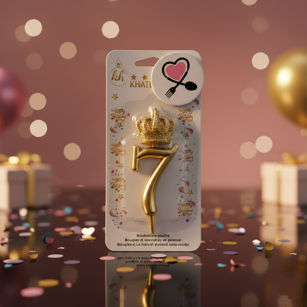 اگر بهدنبال ثبت عکسهای خاص و اینستاگرامی از جشن تولد هستید، شمع طلایی تاجدار عدد هفت با درخشش زیبا و طراحی منحصربهفردش، جلوهای حرفهای به تصاویر شما میدهد و تجربهای بهیادماندنی میسازد.