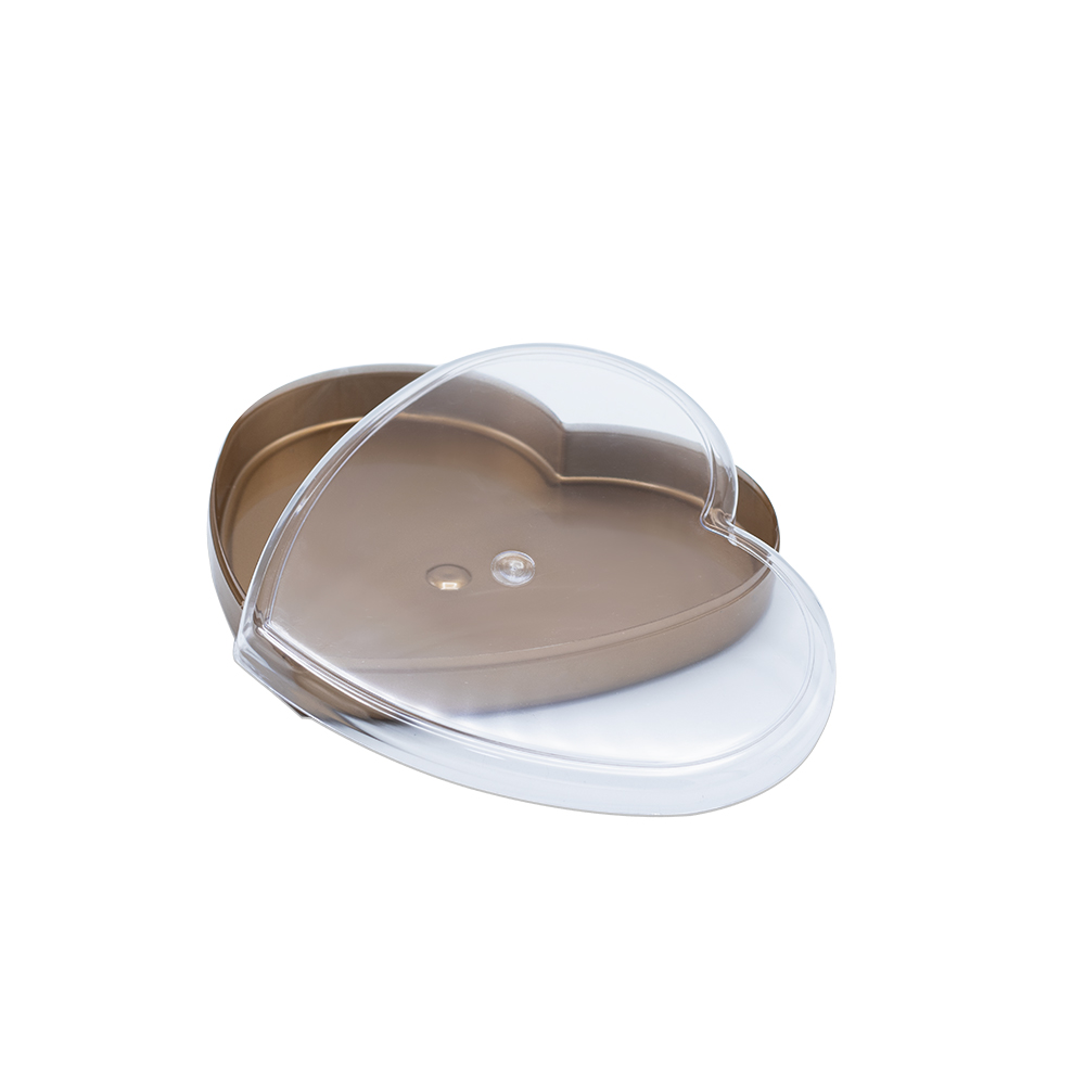 ظرف پلاستیکی قلب با کفی طلایی | بستهبندی لوکس و مقاوم کیک و دسر برای هدیه و مراسم ویژه