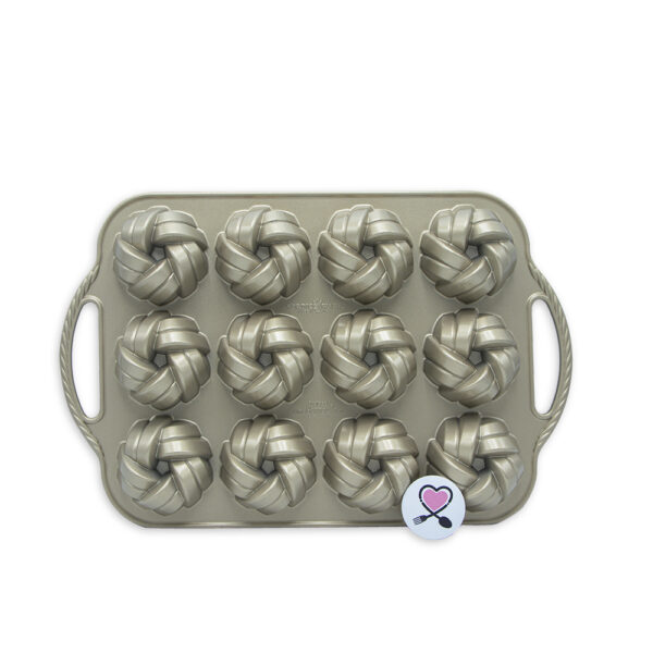 قالب 75th Anniversary Braided Mini Bundt Pan از برند Nordic Ware، به مناسبت ۷۵امین سال فعالیت این شرکت، با طرح زیبای بافت‌دار طراحی شده است. این قالب مینی باندت قابلیت پخت کیک‌لت‌های کوچک را با نمایی هنرمندانه و منحصر‌به‌فرد ارائه می‌دهد.