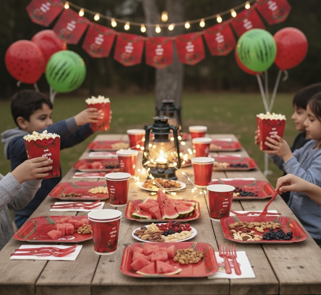 - بادکنک لاتکس هندوانهای قرمز: بادکنک قرمز جذاب که رنگ غالب تم را کامل میکند و فضای جشن را شاداب میسازد. برای خرید تکی، بادکنک قرمز از این لینک قابل سفارش است → (لینک).