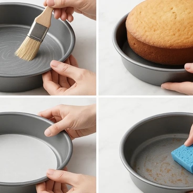 - قبل از ریختن خمیر، قالب را با روغن، کره یا اسپری جداکننده آماده کنید.