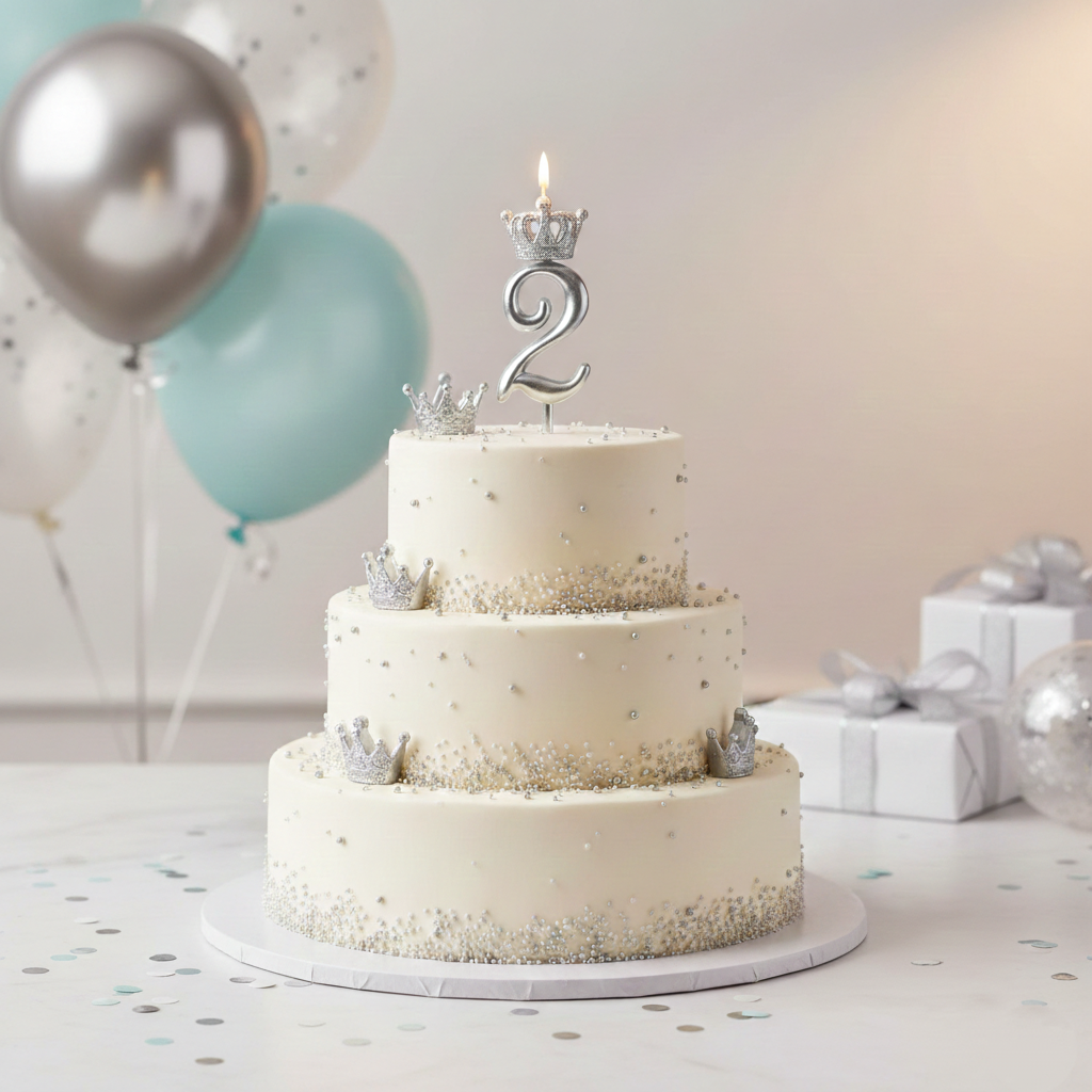جنس باکیفیت این شمع باعث میشود شعلهای یکنواخت، بدون دود اضافی و با سوختی مناسب داشته باشد؛ بنابراین بدون نگرانی میتوانید از آن روی انواع کیکهای تولد، کیکهای فوندانتی و دکوراتیو استفاده کنید. شمع عدد ۲ تاجدار نقرهای انتخابی عالی برای جشن تولد دو سالگی کودک، سالگردهای خاص یا ترکیب با سایر اعداد برای نمایش سنهای مختلف است.