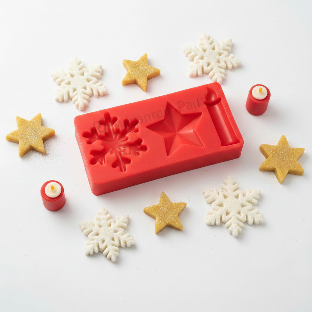 قالب سیلیکونی برف ستاره و شمع | قالب سیلیکونی تزئین کیک و دسر