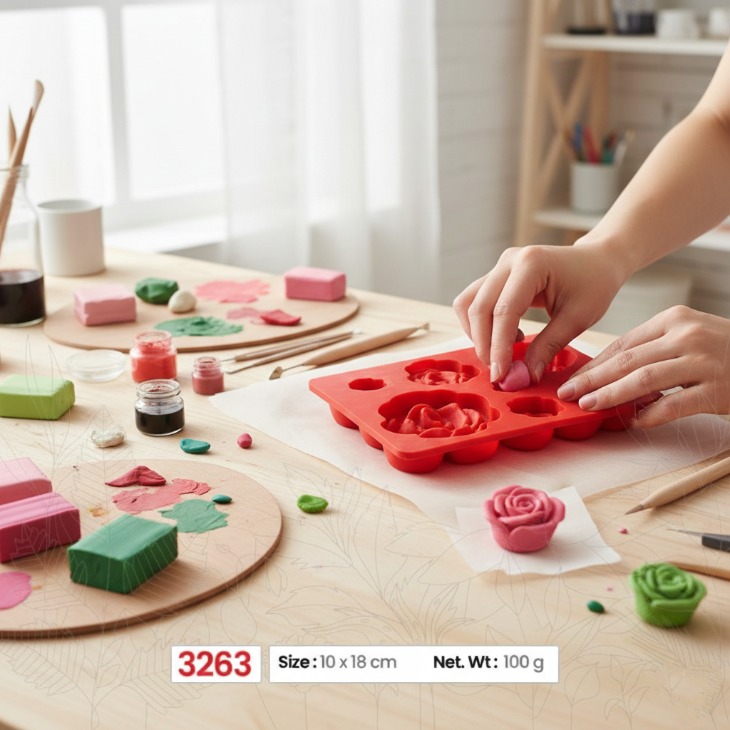 سیلیکون بهکاررفته در این محصول از نوع باکیفیت و انعطافپذیر است که باعث میشود خمیر فوندانت، گام پیست، شکلات قالبی، ایزومالت و حتی خمیر گل چینی بدون چسبندگی و پارگی از قالب جدا شوند. انعطاف بالای سیلیکون در کنار عمق مناسب قالب، جزئیات طبیعی گلبرگها را بهزیبایی نمایش میدهد و نتیجه نهایی، گلهایی سهبعدی و کاملاً طبیعی خواهد بود.