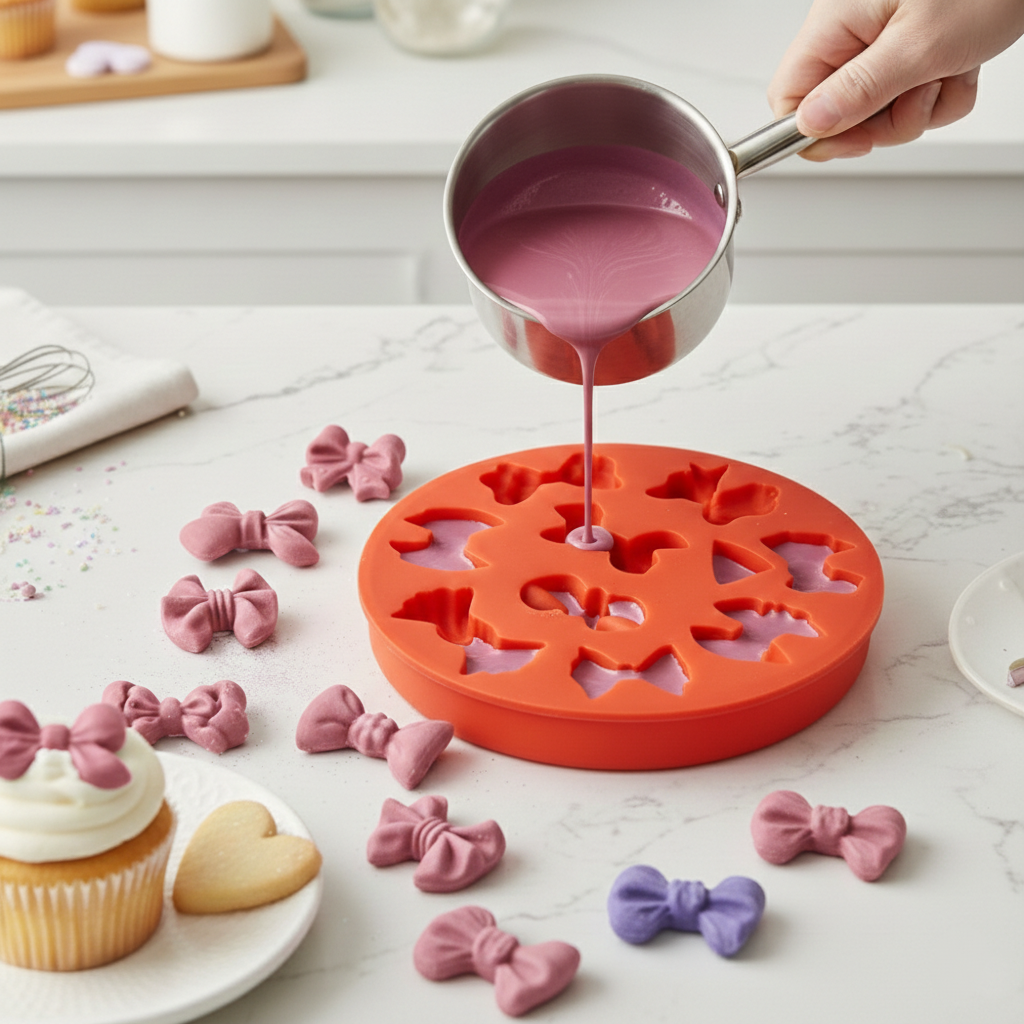 جنس سیلیکونی باکیفیت و منعطف این مولد باعث میشود خمیر فوندانت، خمیر گل، مارزیپان، شکلات قالبی و حتی ایزومالت بدون آسیب و بهراحتی از قالب جدا شوند. جزئیات دقیق روی قالب باعث میشود پاپیونهای نهایی جلوهای کاملاً حرفهای و تمیز داشته باشند؛ بدون نیاز به مهارت پیشرفته در مدلسازی.