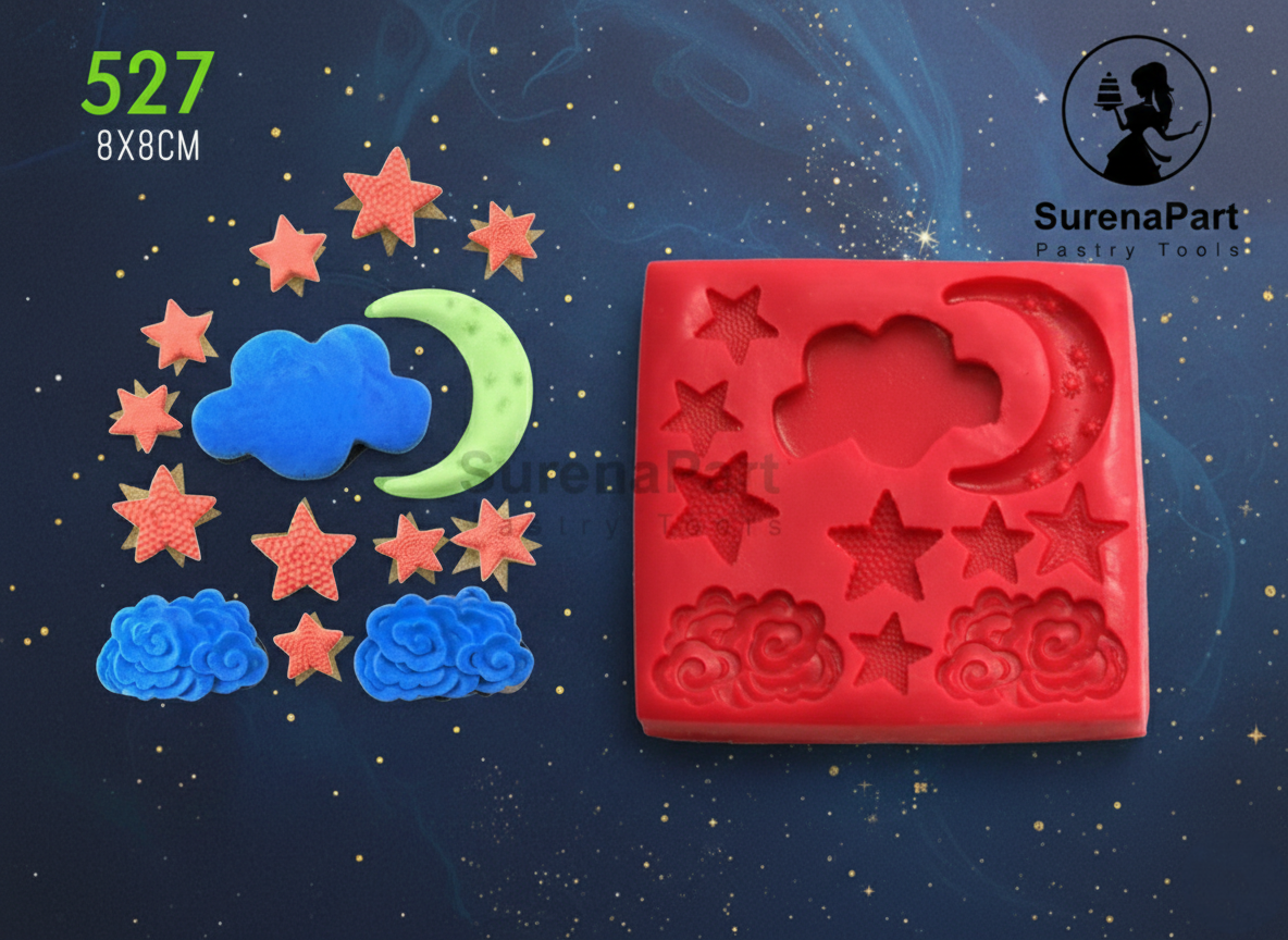 مولد سیلیکونی ماه ستاره ابر سورنا پارت | قالب فوندانت و شکلات طرح آسمانی