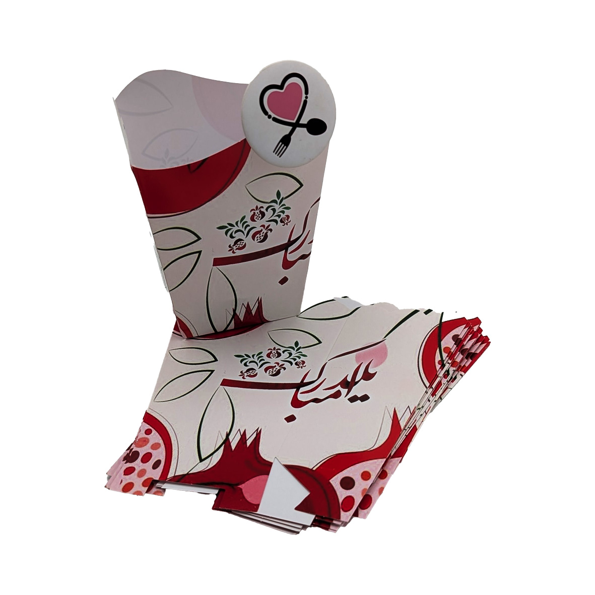 - ظرف پاپکورن کاغذی: این ظرف کاغذی برای سرو پاپکورن، آجیل یا تنقلات طراحی شده و علاوه بر سبک و بهداشتی بودن، جلوه میز را شیکتر میکند. طراحی هماهنگ با تم یلدا باعث میشود جشن شما یکدست و چشمگیر باشد. برای مهمانیهای خانگی و دوستانه ایدهآل است. لینک خرید تکی → (لینک)